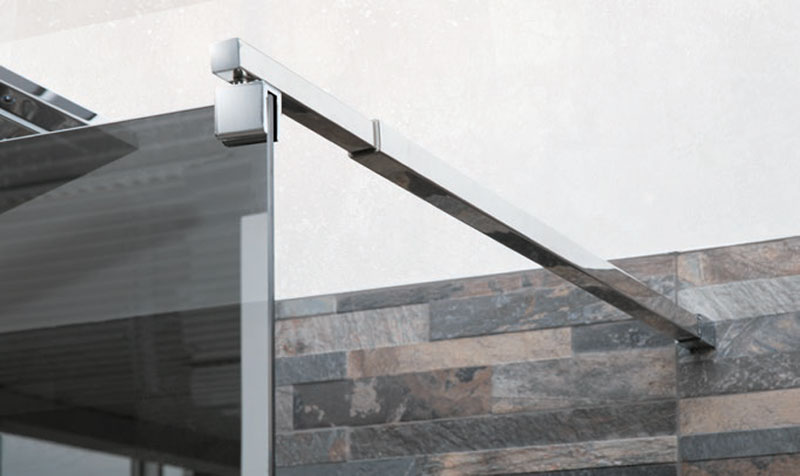 I profili in acciaio chiudono i bordi. Varianti di design per ottenere una doccia SPA di grande eleganza.